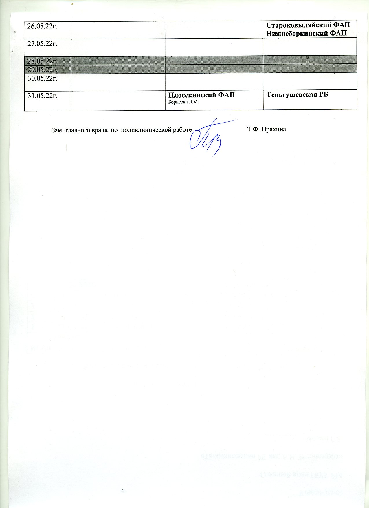 График выездной работы на май 2022 года